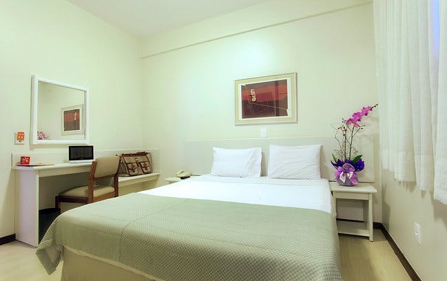Este quarto de 27 m² conta com uma cama de casal e uma cama de solteiro, acomodando até três pessoas com conforto. Equipado com ar-condicionado, Wi-Fi gratuito, TV de tela plana, telefone, toalhas e escrivaninha — ideal para famílias ou pequenos grupos que buscam praticidade e conveniência.